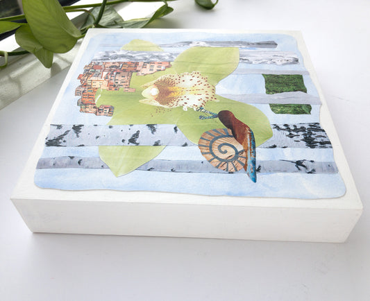 Invite unexpected elements of surprise into your home with original hand-created collage artwork.